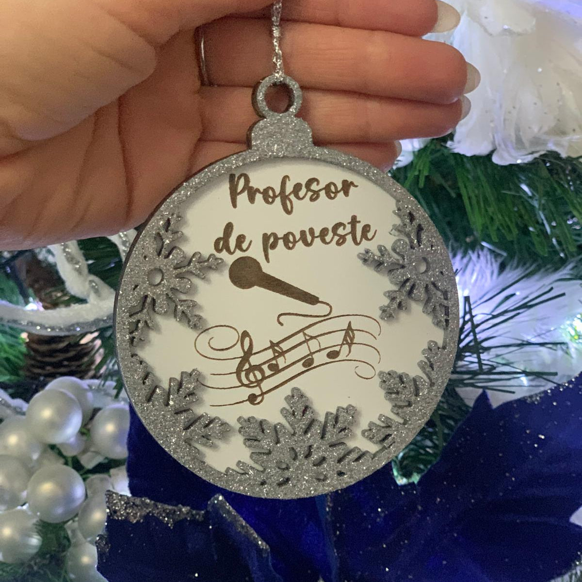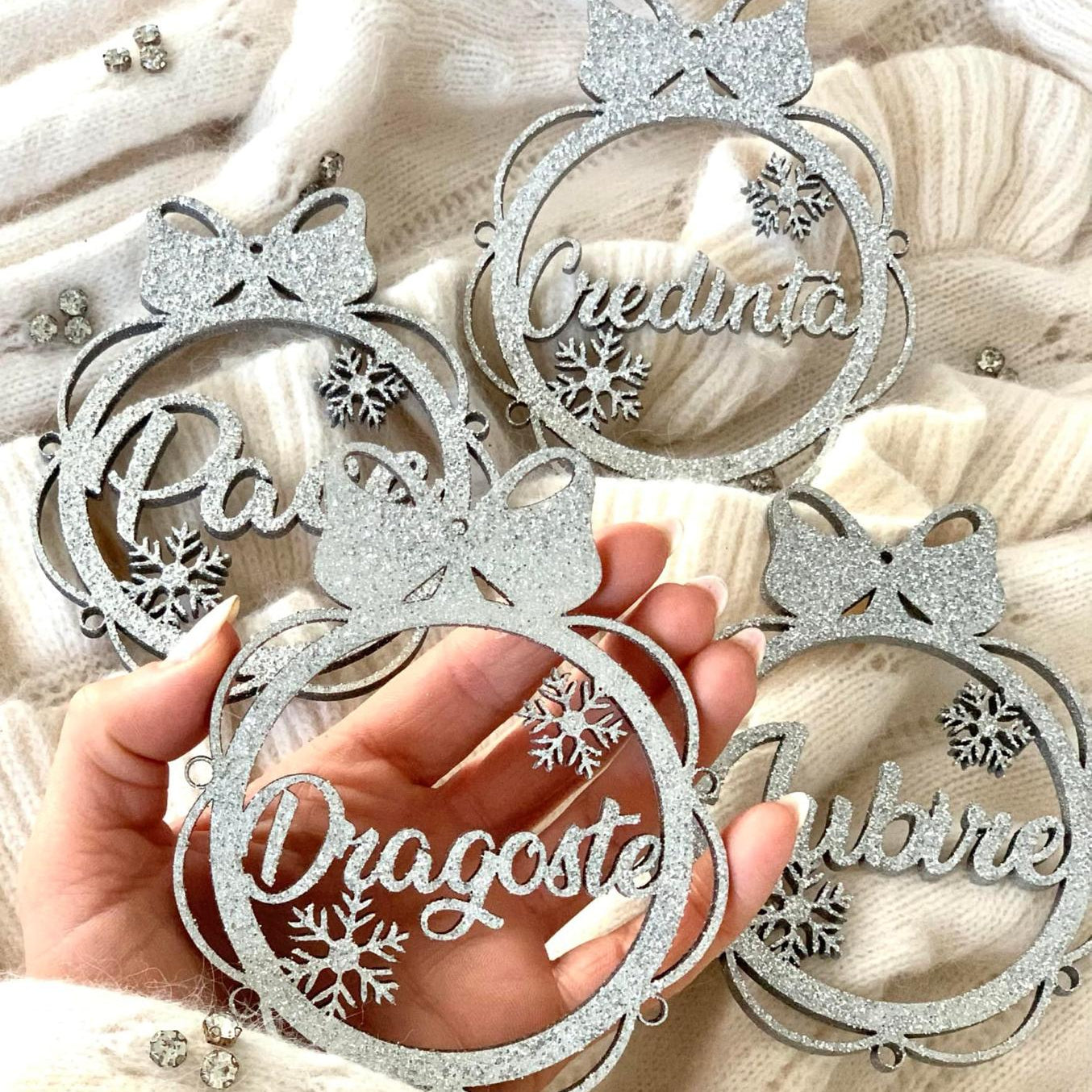 Glob personalizat cu fundă și fulgi