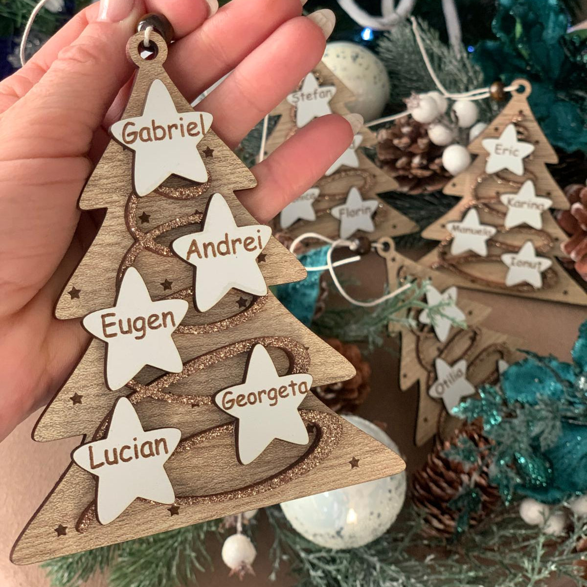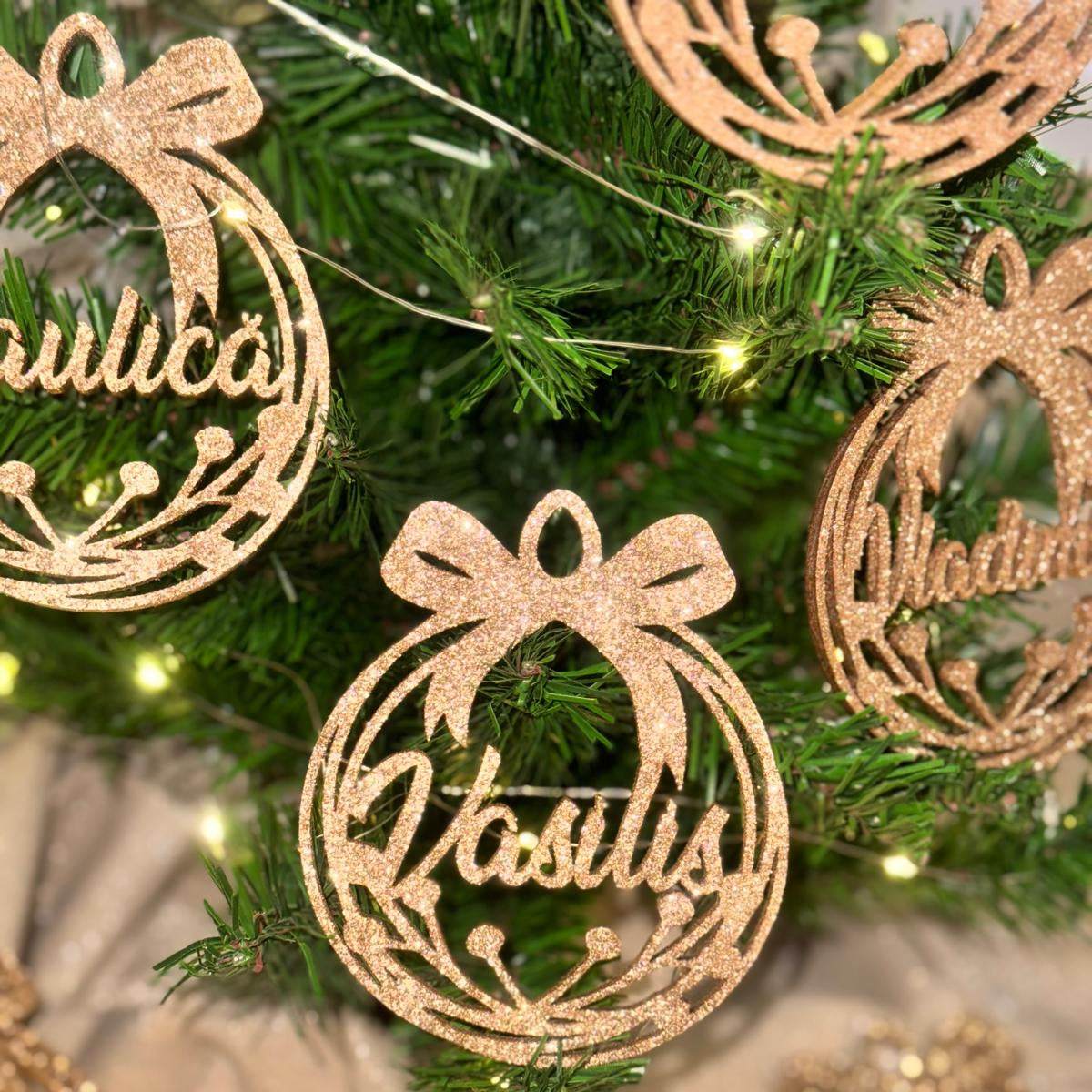 Glob fundă personalizat cu brad și stele