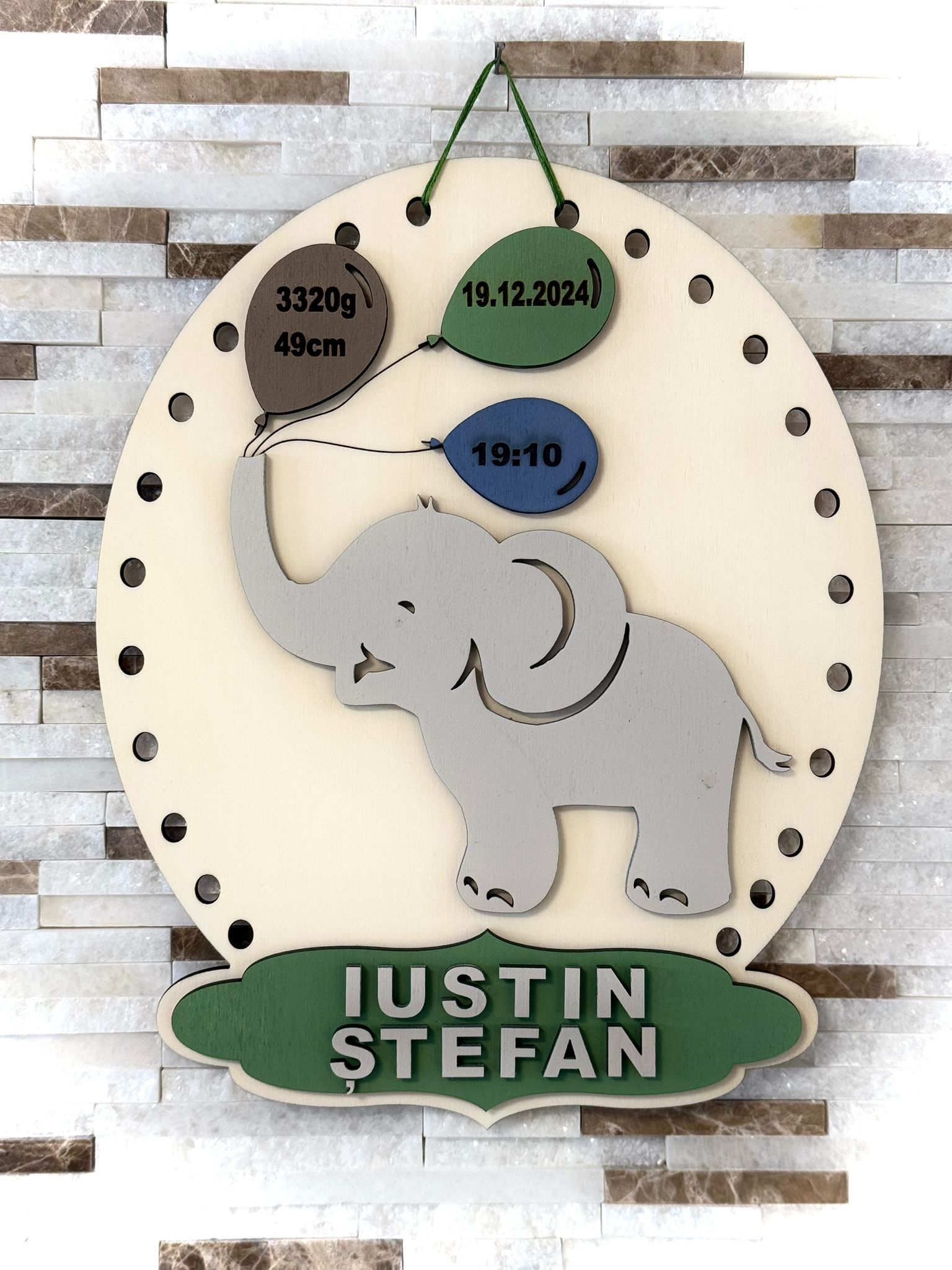 Tăbliță cu datele copilului elefant